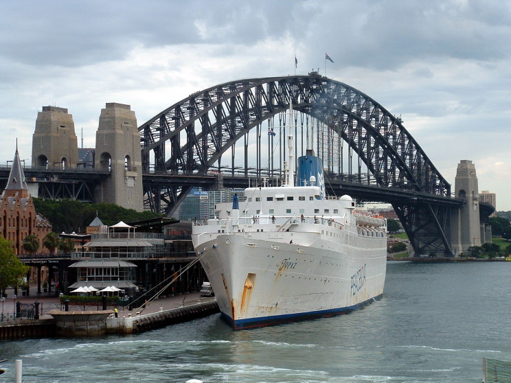 December 27, 2007: The Topaz at the Circular Quay, Sydney, Australia. The Harbour Bridge is seen in the background. |