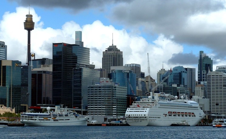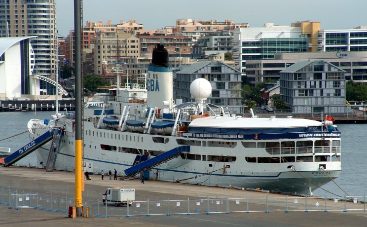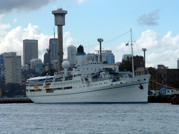 August 29, 2008: Doulos at Darling Harbour, Sydney, Australia. The Pacific Dawn is also seen moored at the dock. |