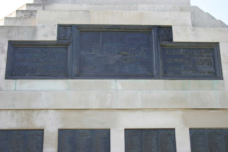 A plaque commemorating the naval battles of Heligoland, Coronel, Falkland Islands, Dogger Bank and Jutland. |