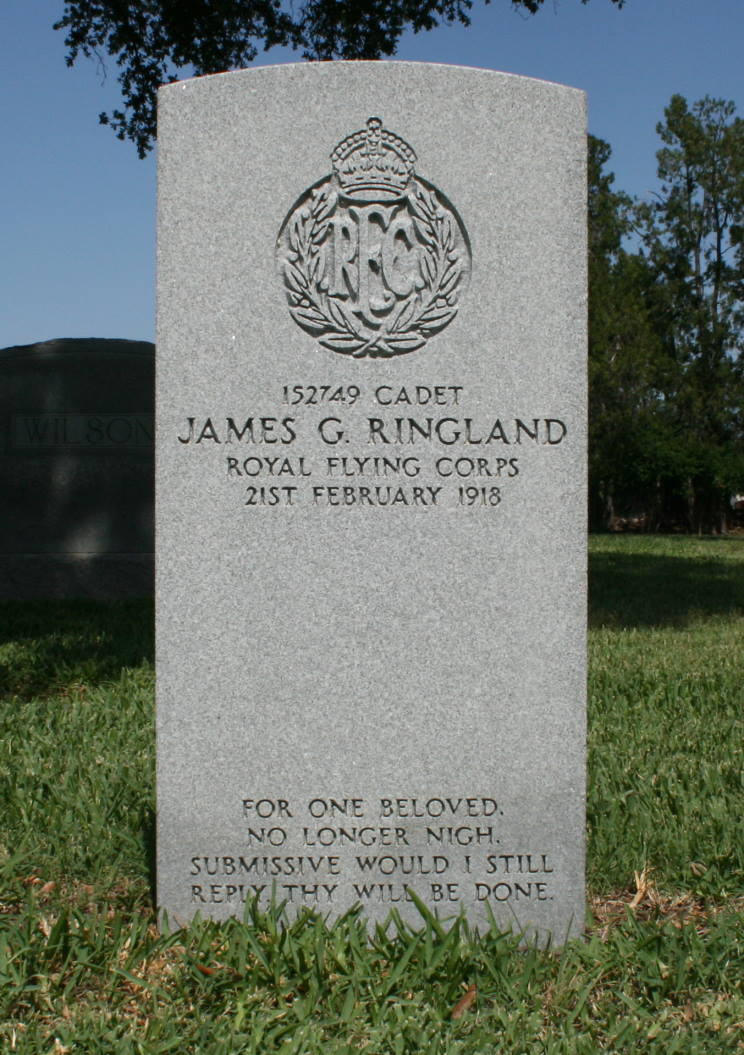 9. Cadet James Gourley Ringland, R.F.C., died Feb. 21, 1918. |