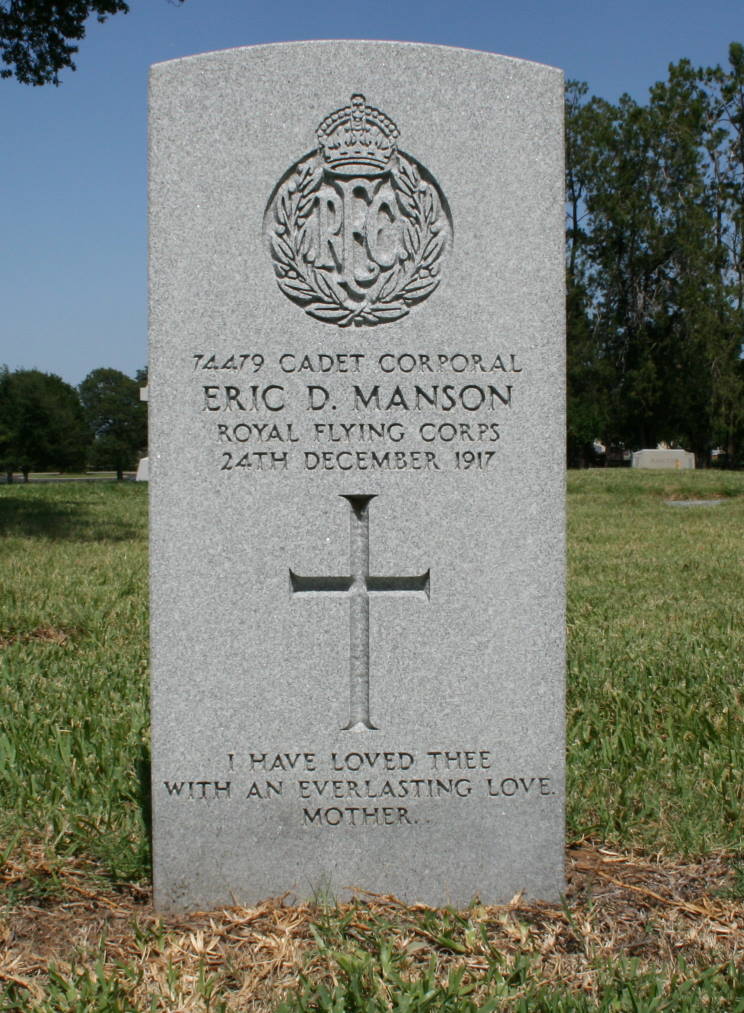 11. Cadet Corporal Eric Douglas Manson, R.F.C., died Dec. 24, 1917. |