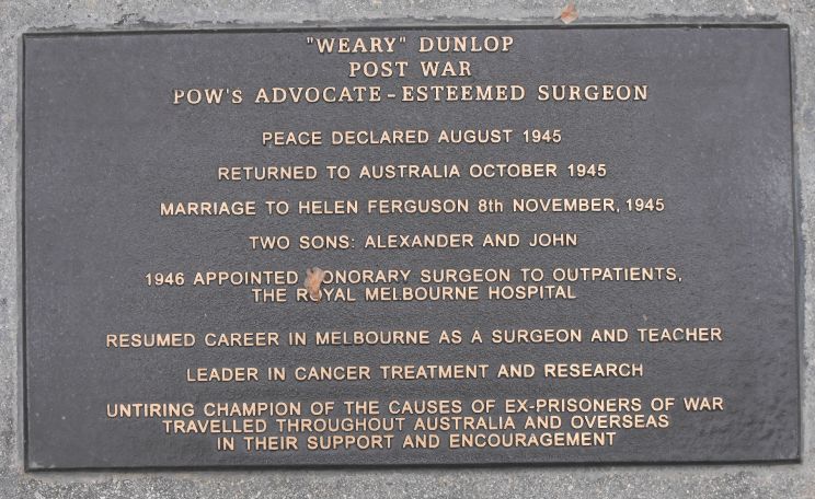 Plaque describing the post war activities of Sir Edward "Weary" Dunlop. |