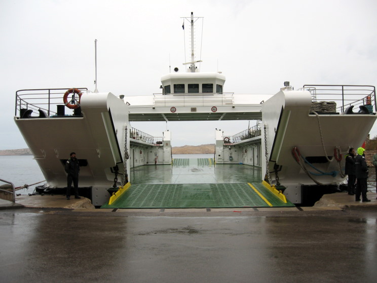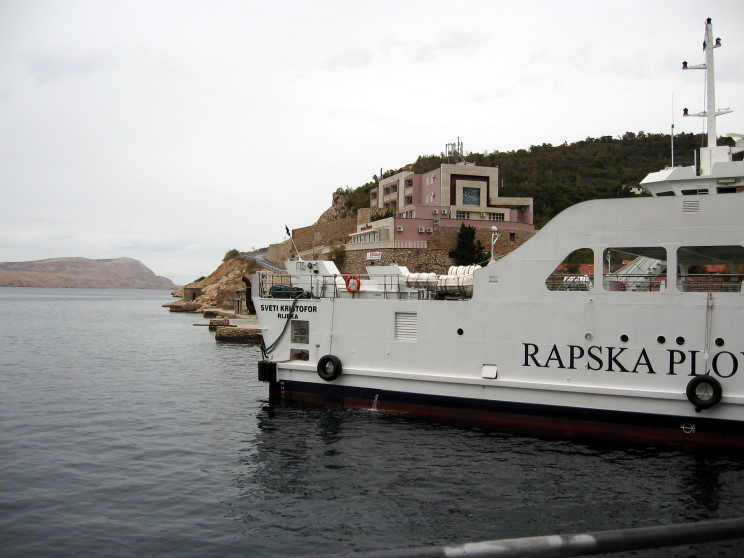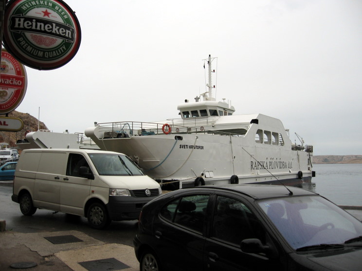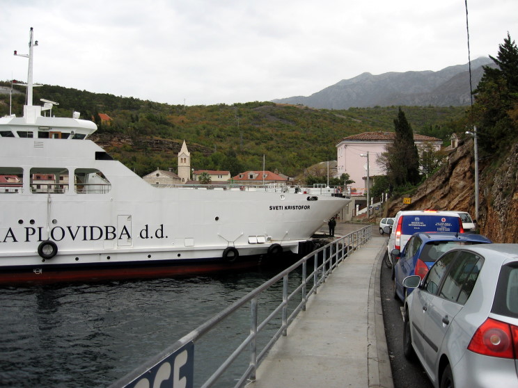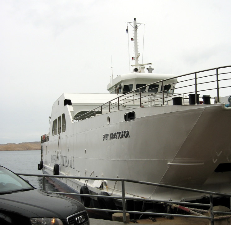 July 7, 2008: The car ferry Sveti Kristofor (St. Christopher) at Jablanac, Croatia. |