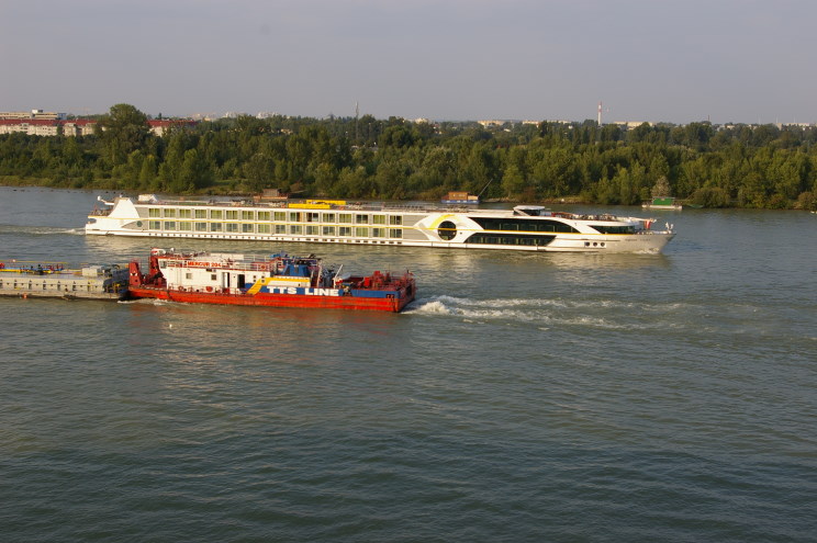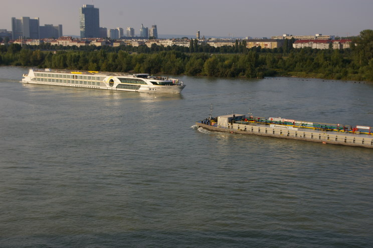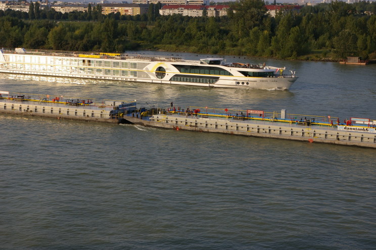 August 19, 2009: The floating hotel Swiss Tiara seen on the Danube River in Vienna, Austria. |