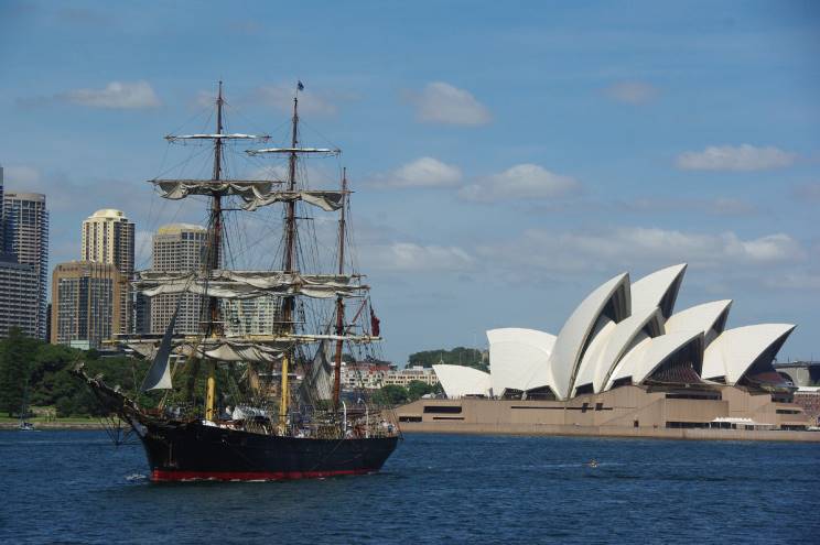 June 26, 2009: James Craig arriving at Circular Quay, Sydney as part of the 200th anniversary commemoration of the appointment of the first Post Master General in the then colony of New South Wales. |