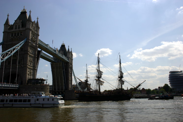 June 2007: Götheborg passing under the Tower Bridge departing London, England.