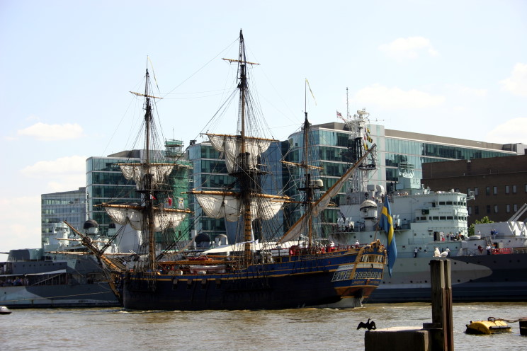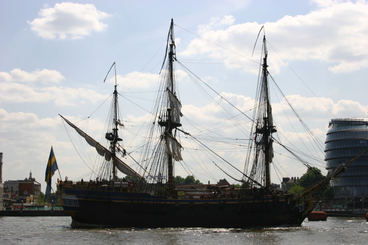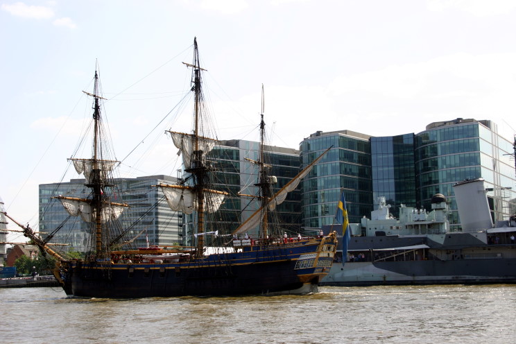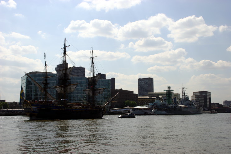 June 2007: Götheborg approaching the HMS Belfast on the Thames River in London, England.