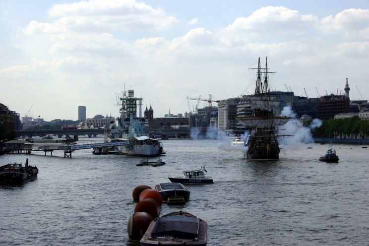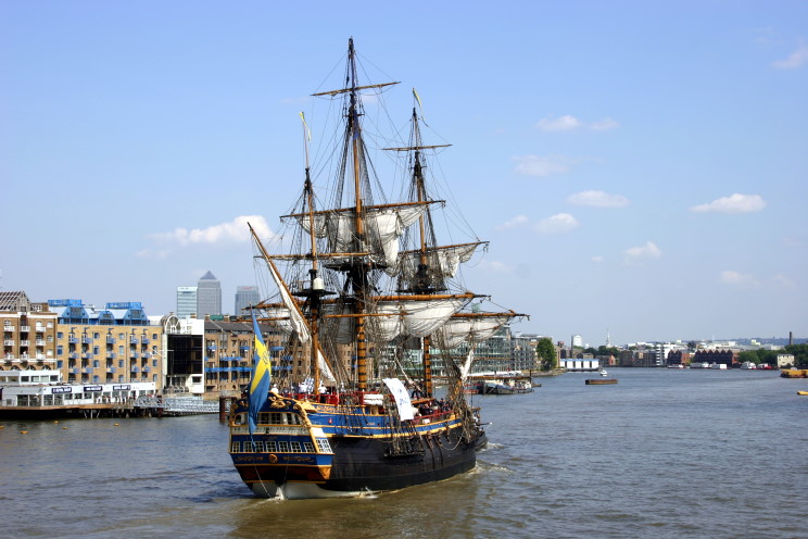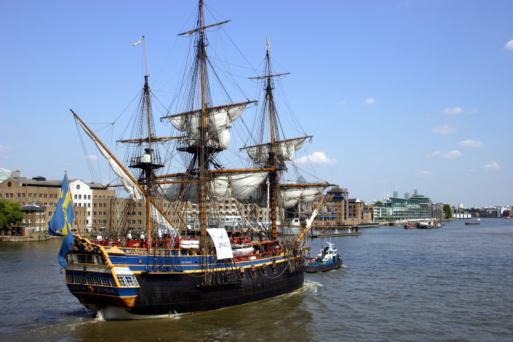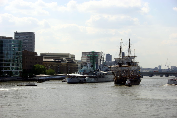 June 2007: Götheborg alongside the HMS Belfast on the Thames River in London, England.