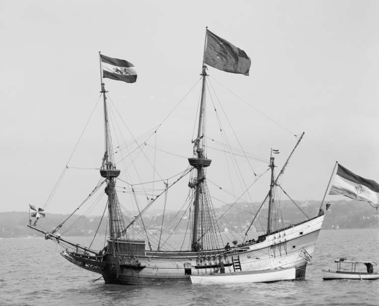 Half Moon replica seen in New York during the Hudson-Fulton Celebration in 1909. |