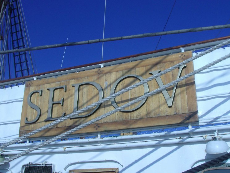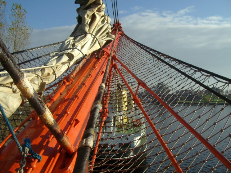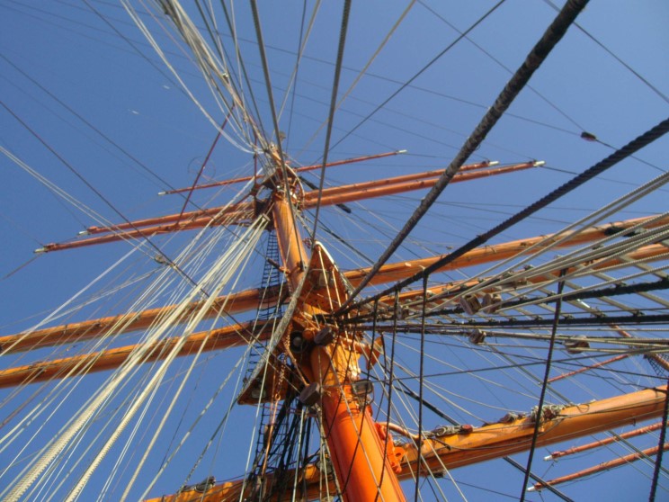 Looking up the main mast of Sedov. |