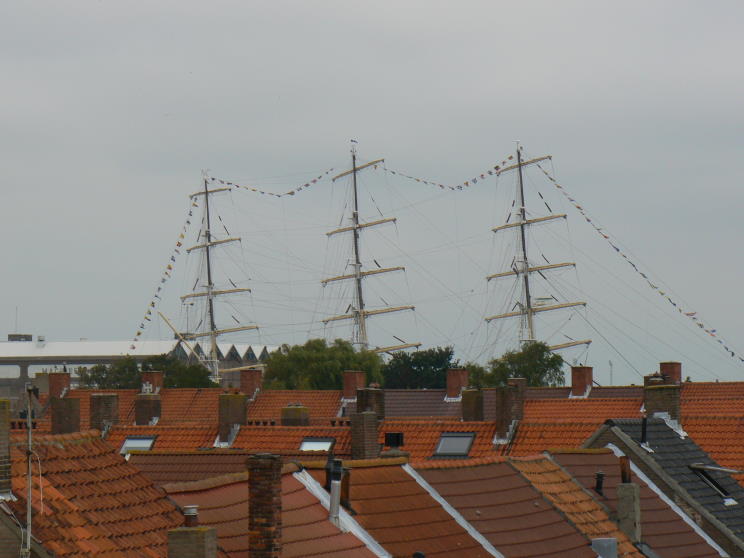 August 25, 2007: The masts of Mir standing high above the rooftops of Vlissingen, Netherlands. |