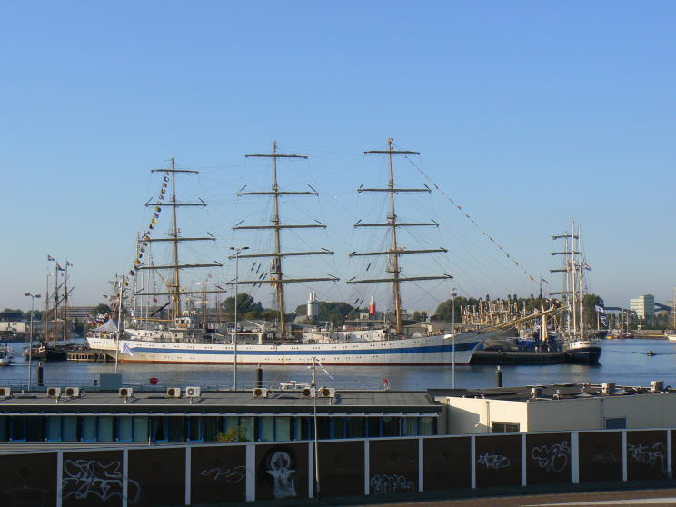 August 25, 2007: Mir seen at Vlissingen, Netherlands. The Stad Amsterdam is seen in the foreground. |