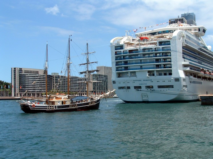 January 9, 2008: Our Svanen at the Circular Quay, Sydney, Australia moored behind the cruise ship Sapphire Princess. |