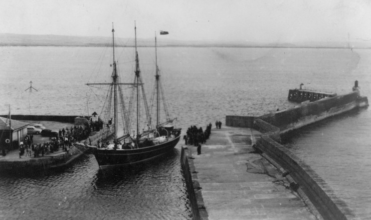 Prince Louis arriving at Burghead Harbour, Scotland. |