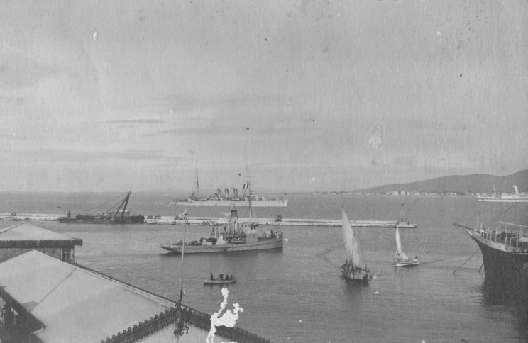 December 12, 1918: HMAS Brisbane seen at Smyrna (Izmir), Turkey. Photo by Padova Frères. |