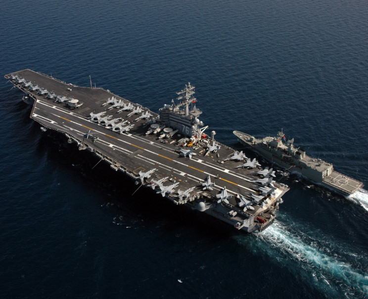 April 21, 2006: HMAS Ballarat FFH-155 seen alongside USS Ronald Reagan CVN-76 in the Persian Gulf during Operation Iraqi Freedom. |