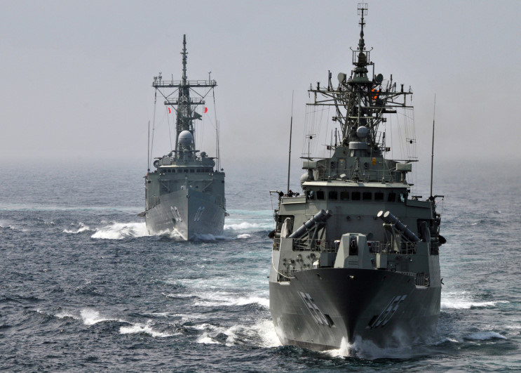 July 17, 2009: HMAS Ballarat FFH-155 and HMAS Sydney FFG-03 seen off the coast of the USA during Operation Northern Trident 2009. |