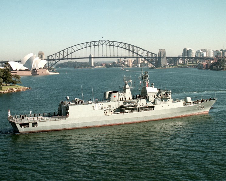 | HMAS Warramunga FFH-152 seen at Sydney Harbor. |