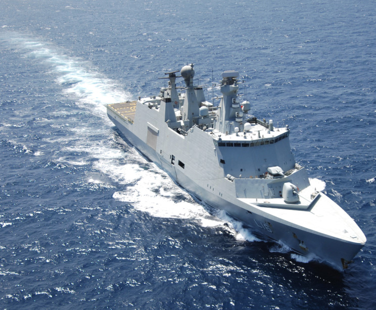 March 27, 2009: Absalon L-16 seen during for counter-piracy operations in the Gulf of Aden.  |