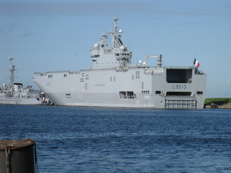 April 9, 2010: Mistral L-9013 and Latouche-Tréville D-646 seen at Wilhelmshaven, Germany. |