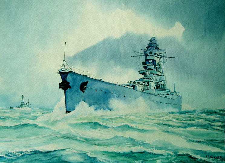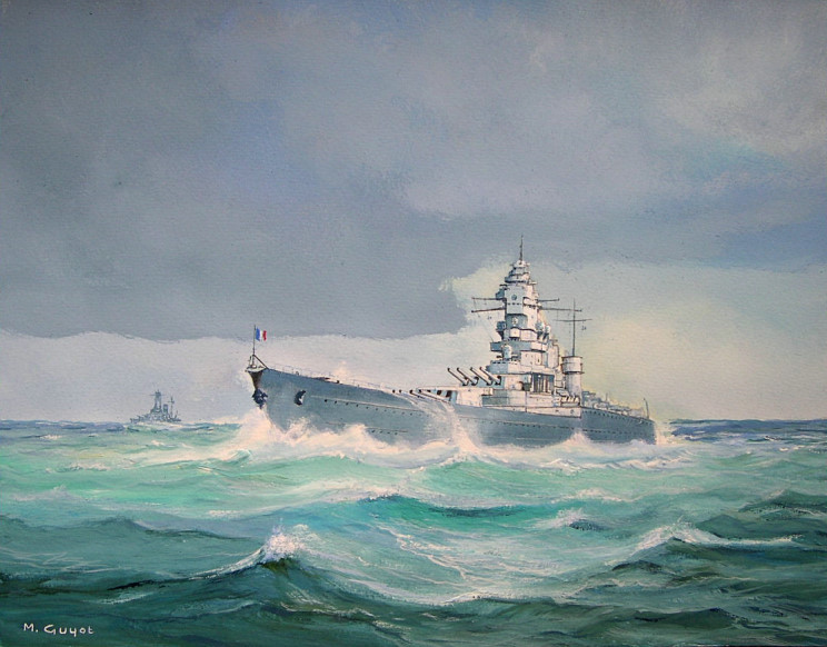 Portrait of the Dunkerque under attack at Mers-el-Kebir, Algeria July 6, 1940.  |