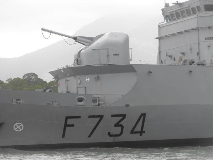 November 11, 2012: Close-up of the 100mm gun on Vendémiaire F-734. |