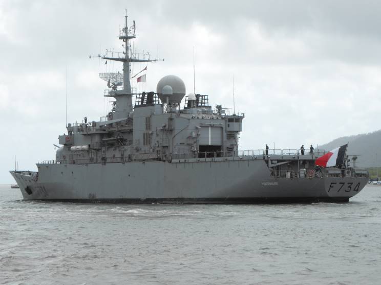 January 29, 2018: Vendémiaire F-734 seen alongside USS Michael Murphy DDG-112 in the Pacific. |