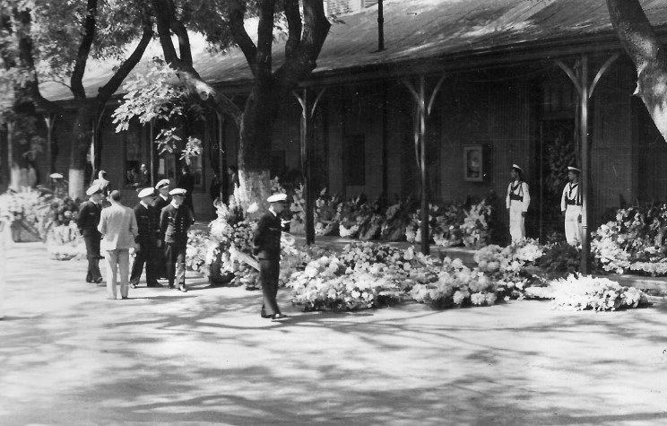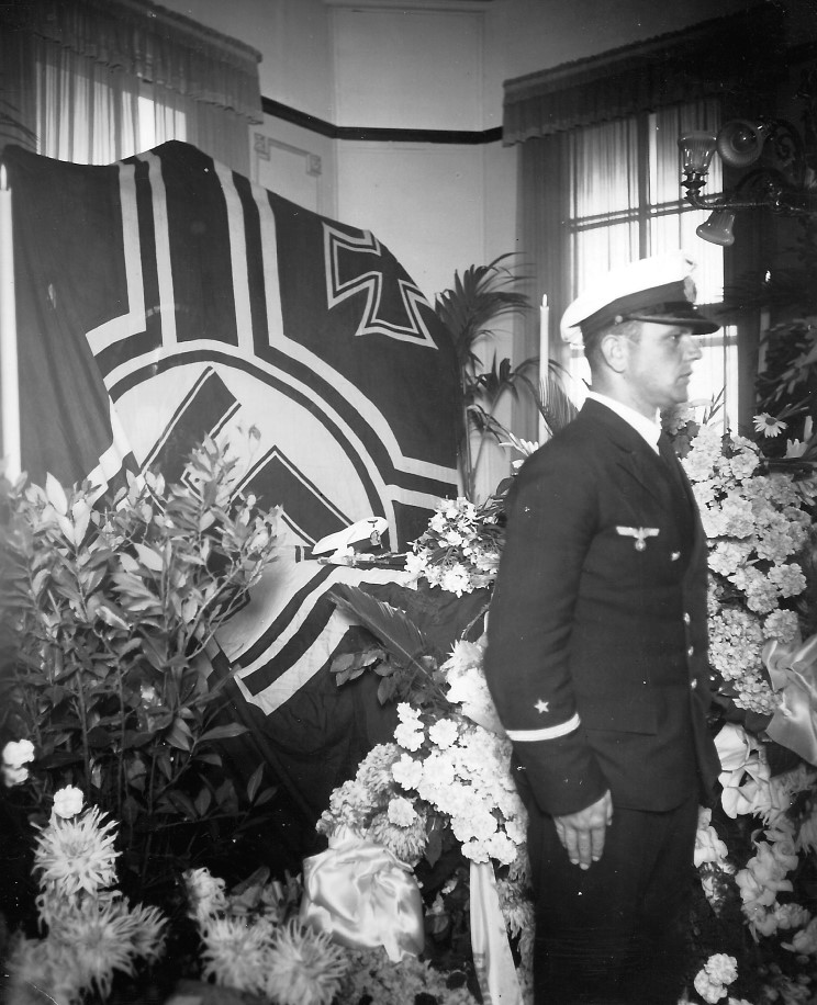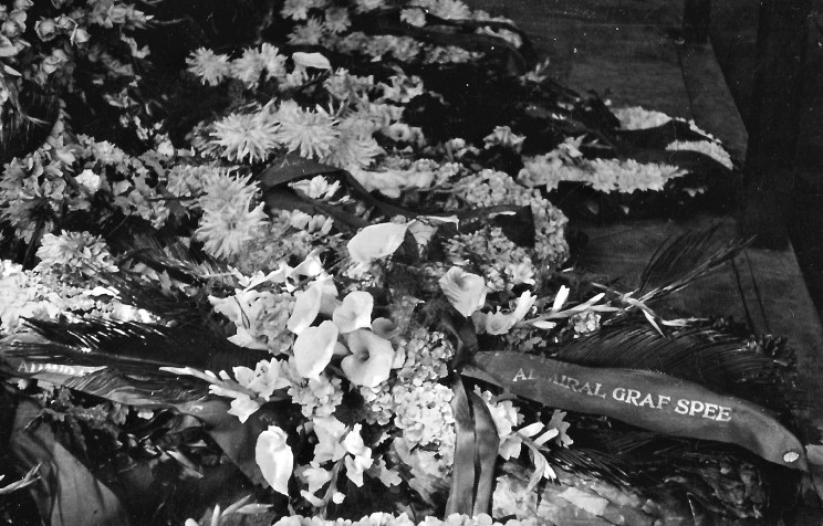 December 20, 1939: Flowers brought in tribute to Kapitän zur See Hans W. Langsdorff. |