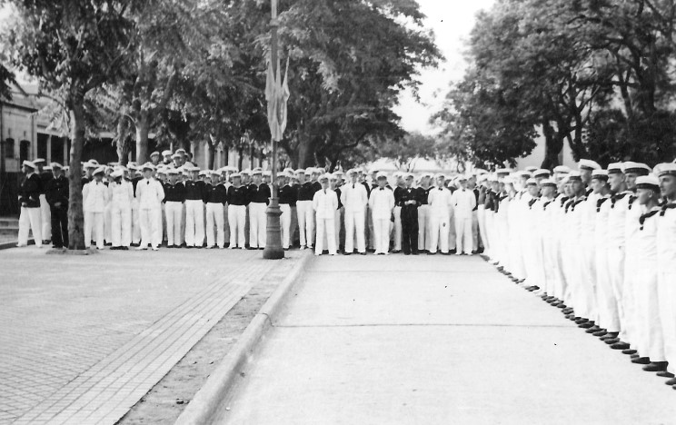 December 20, 1939: Crewmen assembled at the wake for Kapitän zur See Hans W. Langsdorff. |
