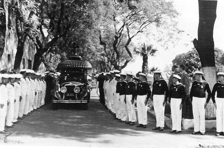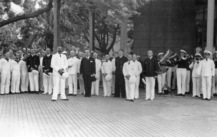 Officials assembled for the wake for Kapitän zur See Hans W. Langsdorff. |