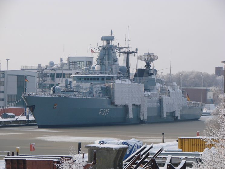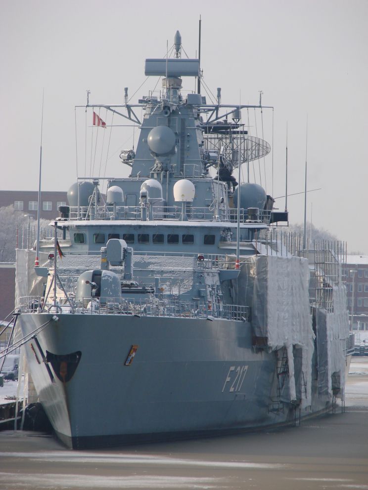 December 18, 2010: Bayern F-217 seen at the Marinearsenal, Wilhelmshaven, Germany. |
