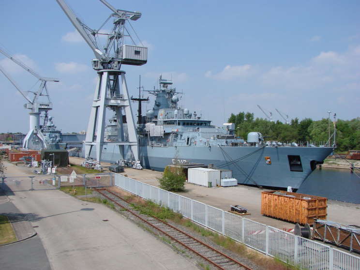 May 21, 2011: Bayern F-217 and Augsburg F-213 seen at the Marinearsenal, Wilhelmshaven, Germany. |