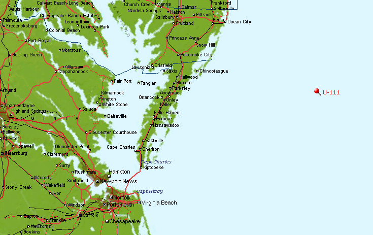 After completing her shakedown cruise on 17 March 1918, she was posted to the IV U-Flottille, Hochseeflotte (Fourth Submarine Flotilla, High Seas Fleet). She de parted Heligoland, a fortified island and naval base located well inside the German Bight, on 25 March. After the outward voyage, which took her around the Orkney Islands, west of the Hebrides Islands, and south along the western coast of Ireland, she arrived in her patrol area near St. George's Channel during the first week in April. On the 7th, she sighted her first target, the 2,346-ton British steamer SS Boscastle. The sub marine made a surface torpedo attack and sank the ship with a single torpedo. Boscastle, however, proved to be her only victim during this first cruise. She operated in the vicinity of St. George's Channel for another five days without encountering further shipping and then began the voyage home to Germany. After backtracking along the route she had taken on the outward voyage, U-111 returned to Germany at Emden on 24 April. A month and three days later, the U-boat exited the Ems estuary to begin her second cruise to raid Allied merchantmen. From the Ems, she headed through the North Sea. On 28 May, her second day out, she came upon a small Danish steamer, the 393-ton SS Dronning Margrethe. Declining to waste a valuable torpedo on such small game, U-111 brought her deck guns to bear and sank the Dane with gunfire. From the North Sea, she followed substantially the same route as on her initial voyage, reaching St. George's Channel early in June. After an unsuccessful patrol off the entrances to St. George's and the English Channels, the U-boat retired from the area and again re traced her outward route. On 22 June just outside the Skaggerak, during the last leg of her homeward voyage, the submarine encountered a Norwegian sailing vessel laden with timber for English mines. Once again, she scorned the use of a torpedo in favor of her 4.1-inch and 3.4-inch deck guns and riddled the 272-ton SS Rana with gunfire. Leaving that ship sinking, U-111 headed south through the North Sea for Wilhelmshaven, where she arrived on 26 June. U-111's third and final combat cruise proved to be the least successful of all. She departed Wilhelmshaven on 25 August, transited the Kiel Canal, and headed north through the Baltic Sea around Denmark to debouch into the North Sea by way of the Skaggerak. Thence, she rounded the Orkneys and the Hebrides and headed south along the west coast of Ireland. The U-boat then transited St. George's Channel and entered the Irish Sea. Stormy weather and heavy seas plagued her throughout the cruise, and she appears to have encountered no Allied shipping. She followed the same route back to Germany and concluded her last patrol at Emden on 30 September. Apparently, U-111 remained in port at Emden through the cessation of hostilities on 11 November. Nine days after the armistice, she was surrendered to the Allies and interned at Harwich, England. When the United States Navy expressed an interest in acquiring several of the latest types of U-boats, the Allies allocated six boats- U-117, U-HO, UB-148, UB-88, UC-97, and U-164 -to the United States on condition that they be destroyed within a year of the transfer. In March 1919, 12 officers and 120 enlisted men arrived in England to ferry the six submarines back to the United States. The crew assigned to U-164 found the submarine in such atrocious condition that it was impossible to ready her for the Victory Bond drive-the ostensible reason for which she had been acquired. For that reason, American authorities in England arranged to secure the substitution of U-111 for the cannibalized and dilapidated U-164. Soon thereafter, she was placed in commission in the United States Navy, Lt. Comdr. Freeland A. Daubin in command. Since she had been substituted for U-164 at the very last minute, U-111 did not put to sea on 3 April with the rest of the Ex-German Submarine Expeditionary Force. She remained in Harwich for an additional four days while her crew conducted a crash familiarization course and completed last-minute re pairs. Finally, on 7 April, she steamed out of Harwich and stood down the English Channel. Rather than follow the route taken by the other U-boats via the Azores and Bermuda, U-111''a commanding officer sought to make up the time he had lost by heading directly across the Atlantic via a great circle route. Fog, gales, and heavy seas harassed the U-boat all the way across the ocean. On one occasion, she came near sinking when she began filling with water because of an open sea-cock. However, one of her crewmen crawled under her engines and into the slimy dark water to find and close the offending apparatus. In spite of adversity, U-111 made her passage successfully and moored in New York on 19 April, in plenty of time to carry out her tasks in the Victory Bond campaign. At New York, swarms of tourists, reporters, and photographers roamed throughout the submarine. Navy technicians and civilian shipbuilders also came to try to learn everything they could about German sub marine construction in the brief time before U-111 departed New York for visits to various ports on the Victory bond circuit. For the bond drive, the coasts of the United States and the country's major waterways were divided into five different regions, one for each of the captured U-boats except U-140. U-111 visited ports along the New England coast and received visitors in conjunction with the sales campaign. The submarine completed her assigned itinerary late in the summer of 1919. Following that, she and UB-148 were subjected to an extensive series of performance tests before being laid up at the Philadelphia Navy Yard. During the summer of 1921, she returned to sea for another series of tests, this time as a target for gunnery and aerial bombardment tests. As a result of those experiments, her battered hulk went to the bottom of the ocean sometime in July 1921. |