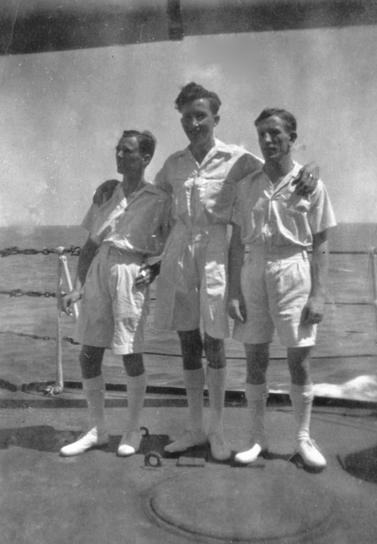 John Lynch (middle) and two unidentified crewmen seen onboard HMS King George V during the Second World War. |