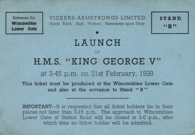 7. Jan. 18, 2009 My Father has been given a model of the King George V as a gift. After discussion with him he told me that my Grandfather had actually built the vessel and had a claim to fame as the man who painted the name on the ships hull. My Father attended the launch of the vessel in 1939 and we still have the invitation for the event (see Below). Thank you for the detail on your site along with the excellent photographs which allow me to see the vessel in its prime. Mr. Neale Dodd Newcastle Upon Tyne, England |