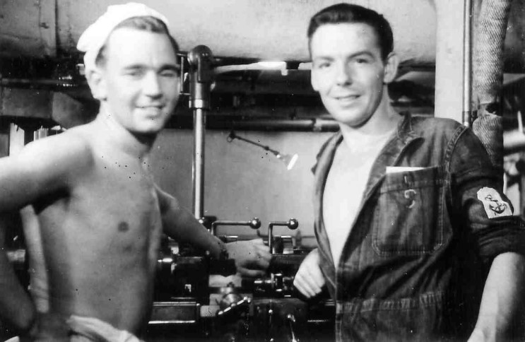 Philip Harry Davison, R.N., in the engine room of HMS Colossus during World War II.