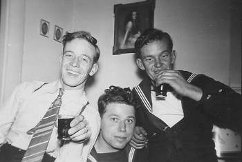 The Boys "Geordies" HMS Formidable, Gibraltar December 1945. Front row left to right: AB. J. Smith, AB A. Todd, Stoker Osborne, Stoker J. T. Hunter, Telegraphist C. A. Niven. Center row left to right: SBA J. Wardle, SBA (illegible), PO J. T. Tomlinson. Top row left to right: AB J. Devine, PO F. Trouton, L/S S. Lowden, PO S. J. Watson, O/S W. S. Porritt, AB Bamage, AB S. Griffin. |