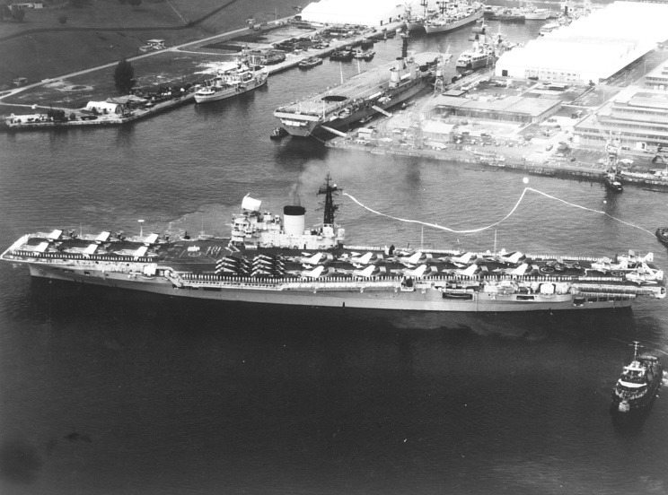 HMS Victorious seen in the 1960s with paying off pennant flying.   |