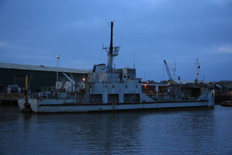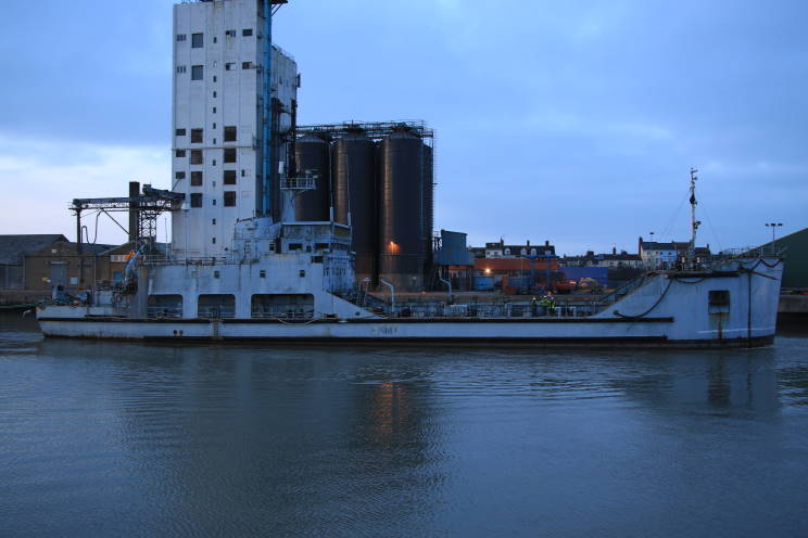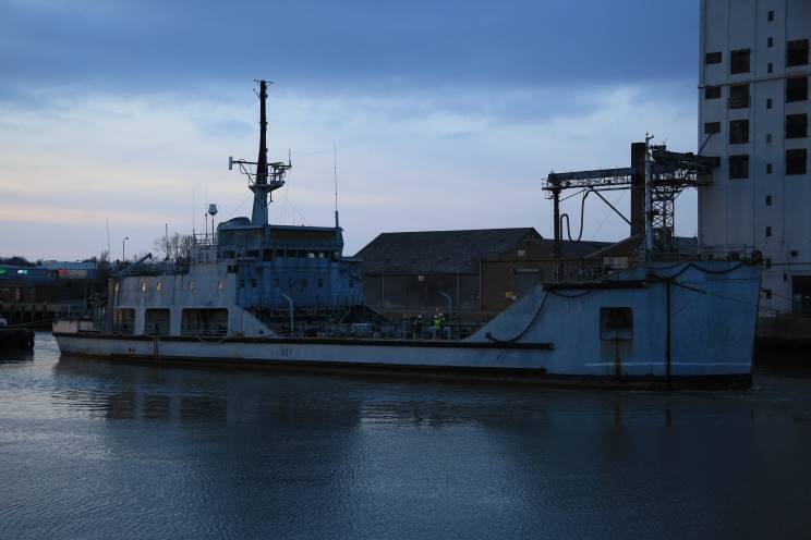 March 22, 2015: Ex- HMAV Ardennes L-4001 seen at Brook Marine, Lowestoft, England just prior to towing to Ghent, Belgium for scrapping. |