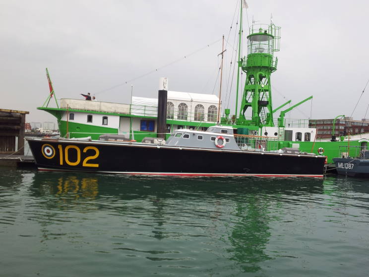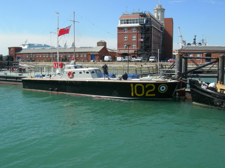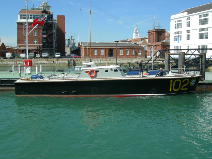 RAF High Speed Launch 102 Type Class: 100 Built by: British Power Boat Company, Hythe Year built: 1936 Displacement 19 tons Length: 64' Beam: 14' Draught: 4' Engines: 3 x 500hp Cummins petrol engines Speed: 42 knots 22 of these craft were built and because of their unrivalled speed at the time were nicknamed the spitfires of the seas. The young men crewing these craft were very conscious that they were driving a bomb carrying 3,000 gallons of petrol. If hit in the tank they simply exploded. The background to their creation is most interesting. Many people have heard of Major T. E. Lawrence (aka Lawrence of Arabia and El Orrance). After his exploits in Arabia during the First World War, Lawrence sought peace and obscurity and changed his name and enlisted in the RAF as simple Aircraftman T. E. Shaw. He just couldn't let things rest and designed a high speed craft for use in servicing seaplanes. He then went on to inspire and design a launch for ocean service and for service as a rescue craft. 22 of these Class 100 boats were built and did amazing service in the air/sea rescue role. In two months alone HSL-102 rescued some three dozen downed aircrew including the crew of a German bomber. By 1943 the Class 100 boats were replaced by an improved design and were mostly transferred to the Royal Navy for various duties. After the war they were disposed of and HSL-102 passed through various private hands until spotted in 1993 and taken in hand for restoration and was relaunched by HM Queen Elizabeth the Queen Mother in 1996, fifty-five years after she had first stepped onboard during a Royal Inspection to mark its sterling rescue work! HSL-102 is now owned by the Portsmouth Naval Base Property Trust as part of the Historic Dockyard. |