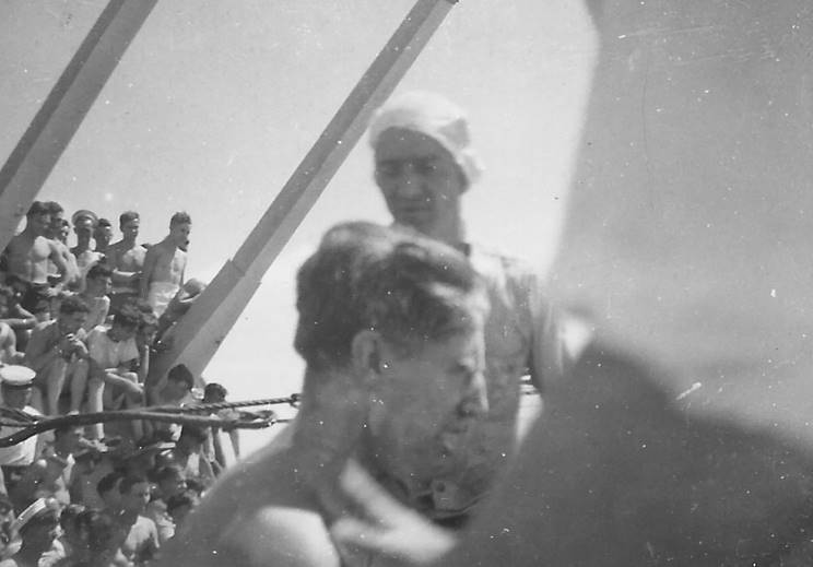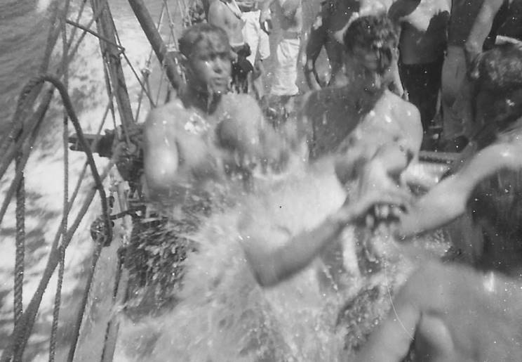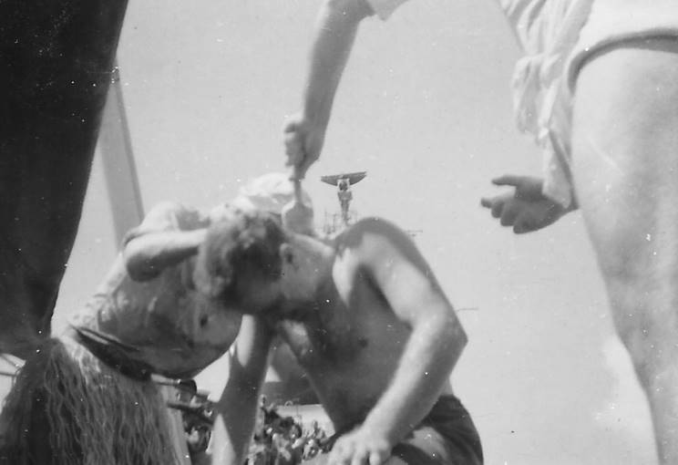 April 1945: "Crossing the line" in HMS Newfoundland. |