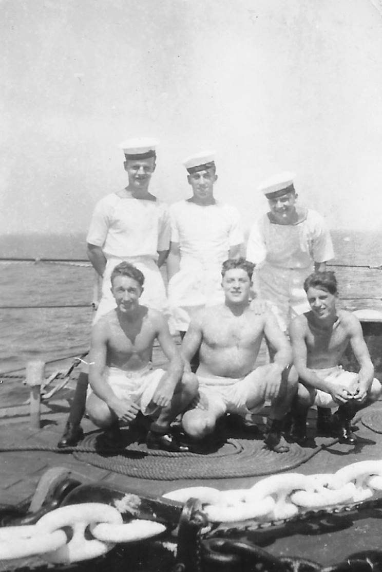 September 2, 1945: "Some of the lads" on board HMS Newfoundland in Tokyo Bay for the Japanese surrender ceremony. |