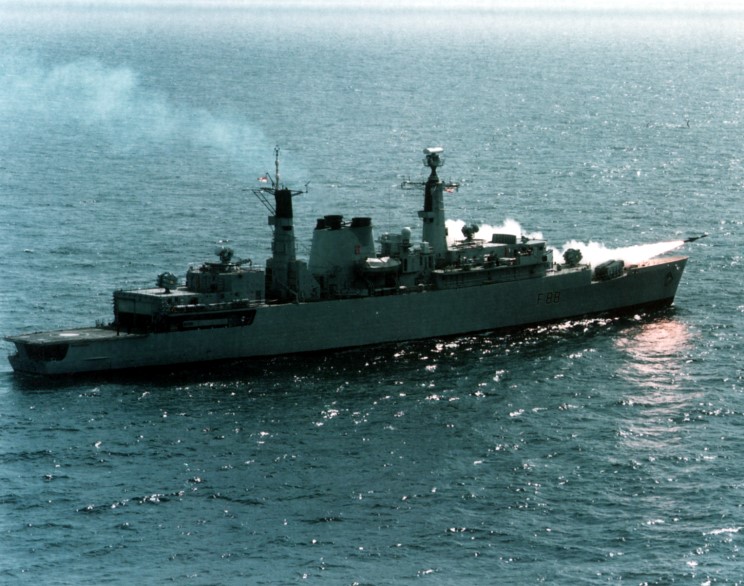 HMS Broadsword F-88 seen firing an Exocet missile in 1986.