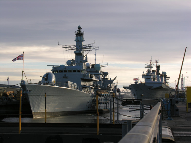 November 30, 2004: HMS Westminster F-237 and HMS Illustrious R-06 in the Firth of Forth locks. |
