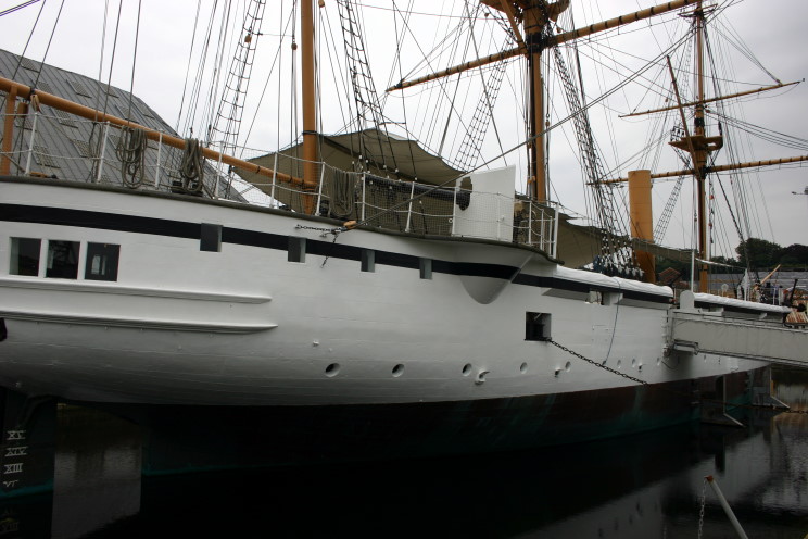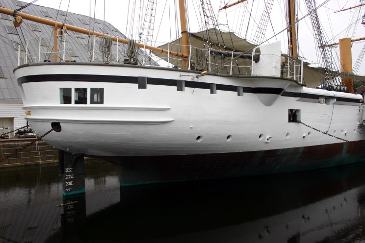 September 17, 2008: Stern view showing the captains windows on HMS Gannet. |