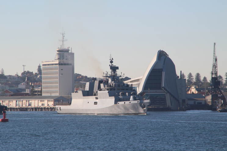 June 17, 2017: INS Kamorta P-28 seen departing Fremantle Harbour, WA, Australia after AUSINEX 17. |
