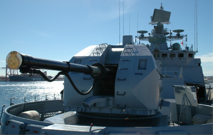 June 15, 2006: Close up of the 100mm/59 DP deck gun on the INS Tabar F-44. |