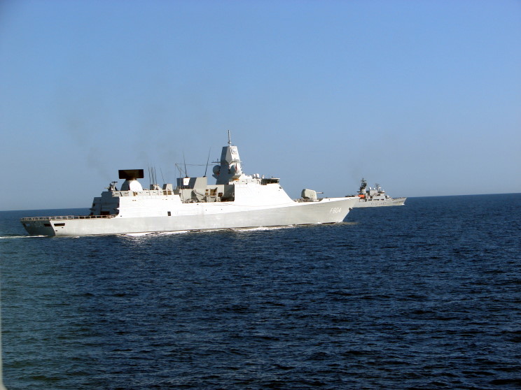 May 24, 2007: HNLMS De Ruyter F-804 and Andenes W-322 in the Baltic Sea during exercise Noble Mariner 2007. |