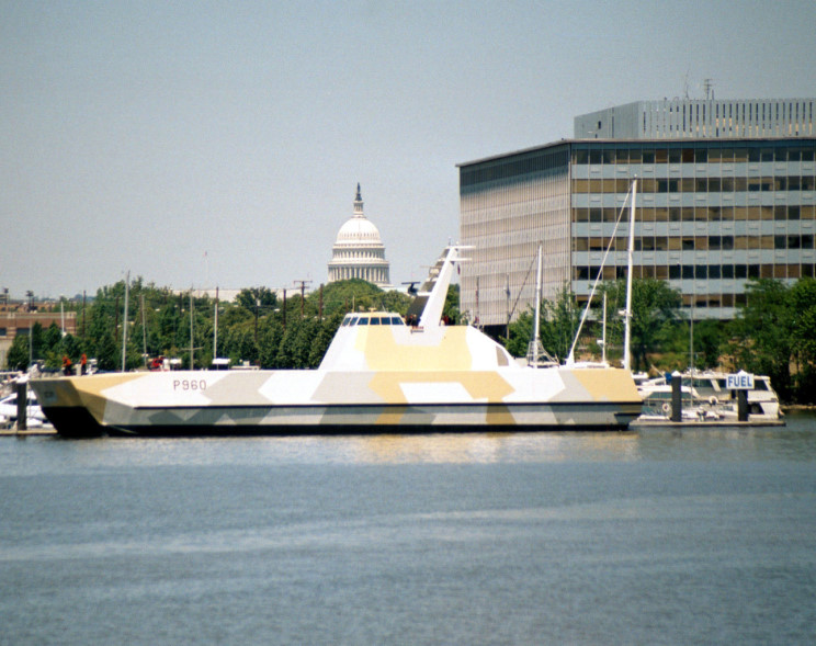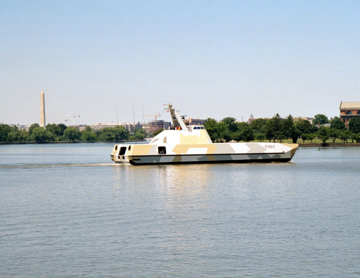 May 22, 2002: HNoMS Skjold P-960 in the Anacostia River, the Washington Monument is seen in the background. |