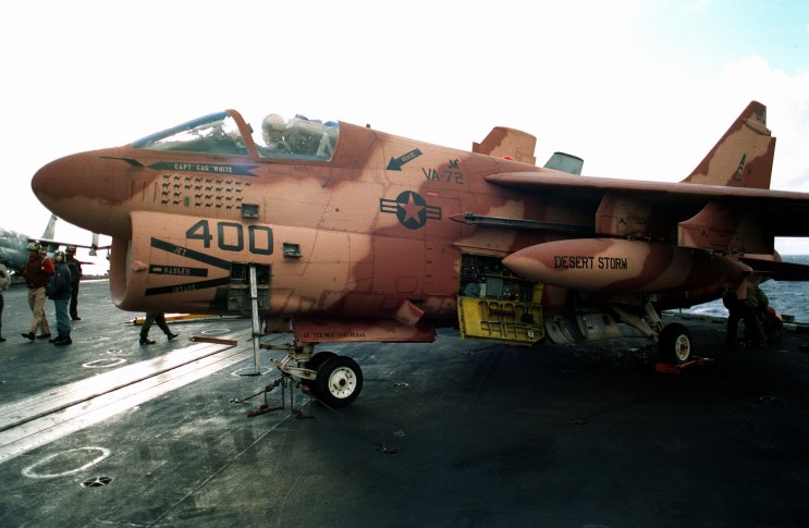 March 1991: The A-7E Corsair II of Commander and Deputy Commander Air Wing 3 (CVW-3) on board the USS John F. Kennedy CV-67 during Operation Desert Storm. |